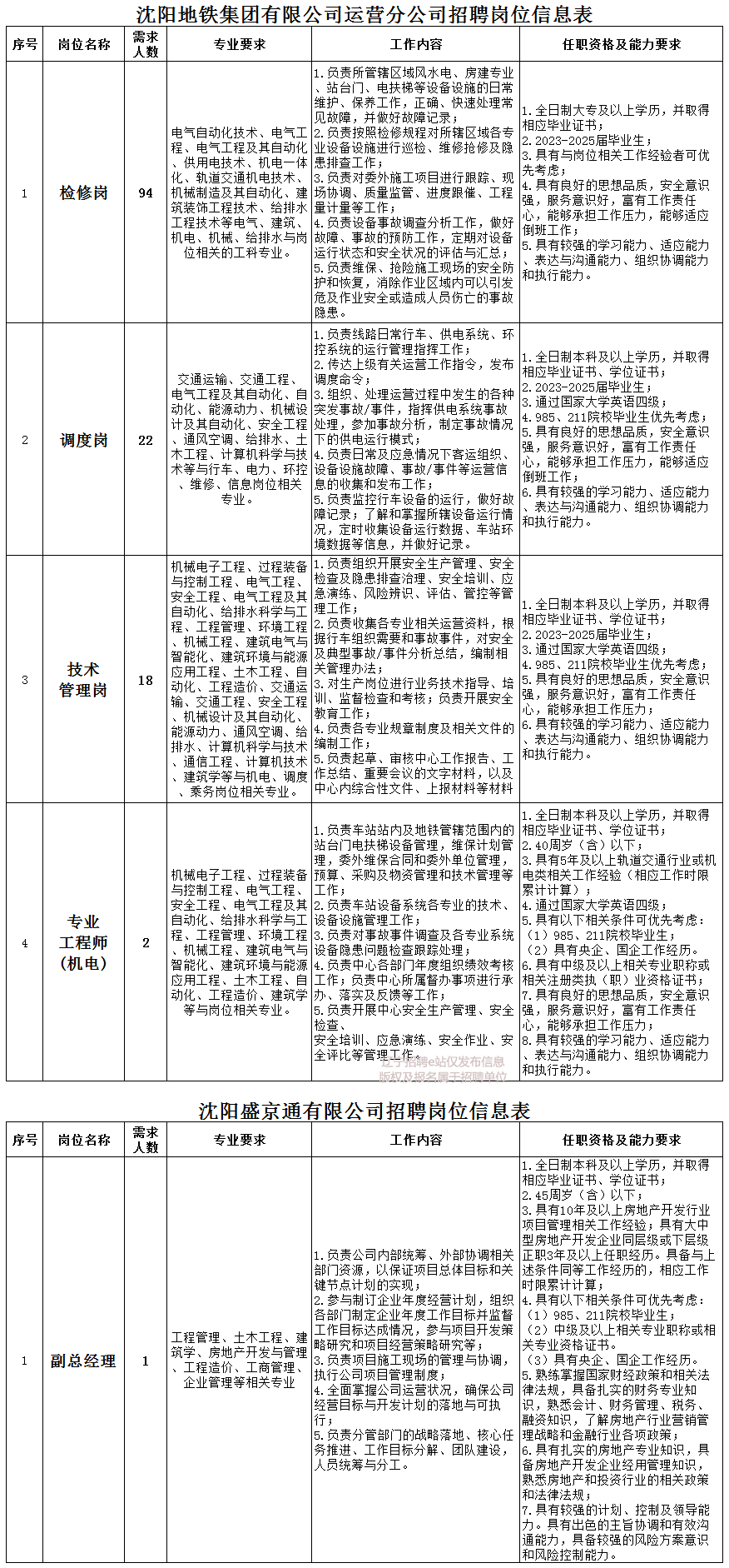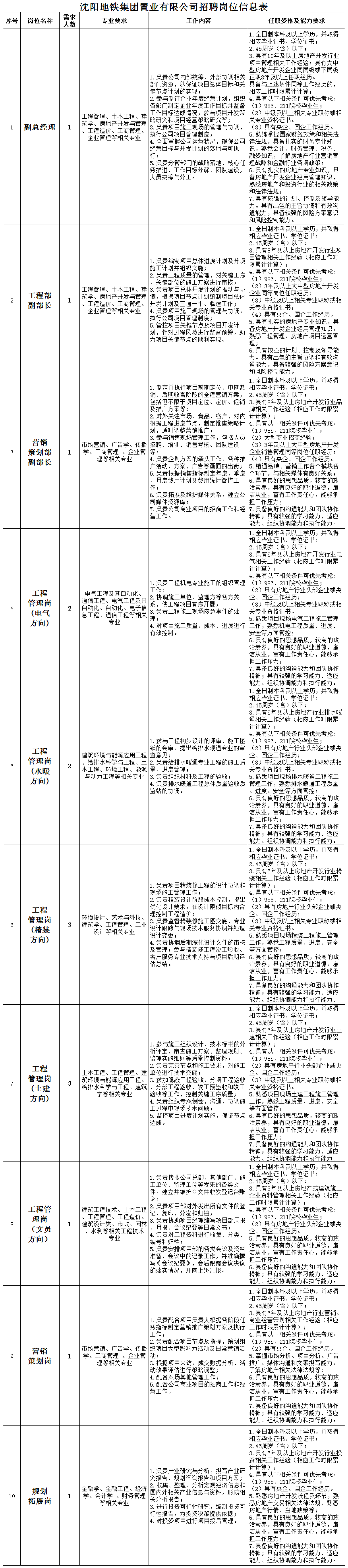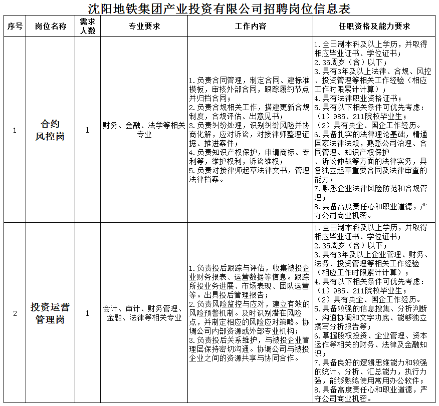 附件:沈阳地铁集团有限公司所属公司招聘岗位信息表(见下图)