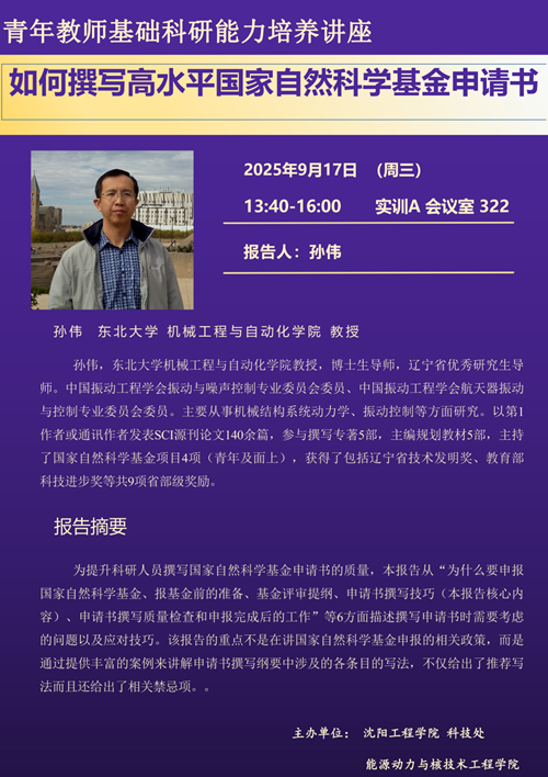 『学术讲座』如何撰写高水平国家自然科学基金申请书
