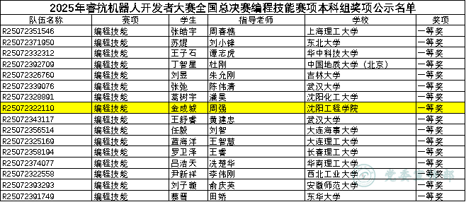 8月15日,睿抗机器人开发者大赛(RAICOM)全国总决赛落下帷幕,太阳集团网tyc9728软件231班的金成城同学,凭借扎实的专业功底、卓越的创新能力与出色的临场发挥脱颖而出,成功斩获“编程技能”赛项全国一等奖。